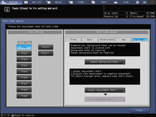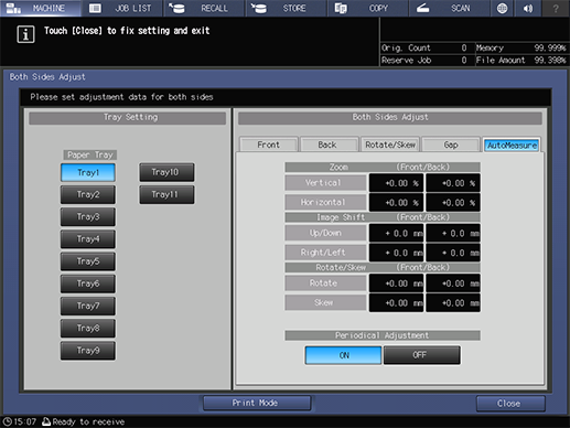 This section describes how to adjust after pressing Both Sides on the MACHINE screen.