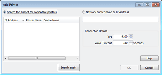 Network printer name or IP Address | Manually add a printer. Enter the printer name or IP address you want to add, and click OK. |