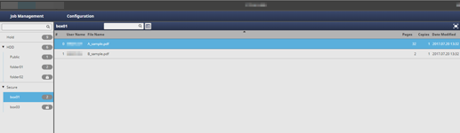 The Secure Job list displays secure jobs in the selected Secure Box.