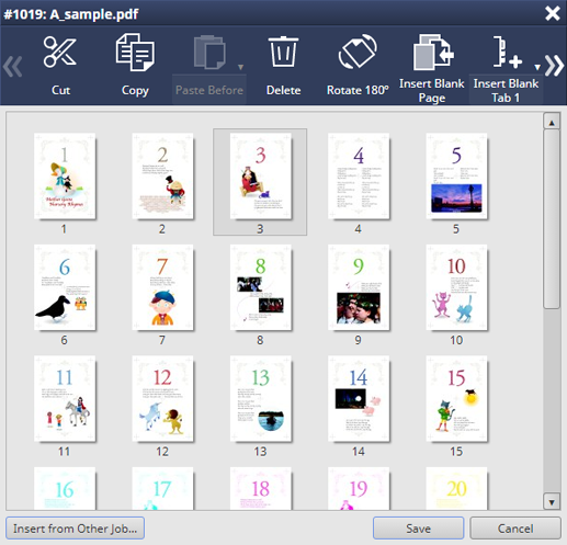 Insert from Other Job | Copies a page of another hold job or secure job, and inserts it into the target position. For details, refer to Inserting a Page from Another Job. |