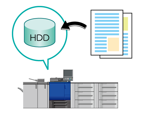 The printed, copied, or scanned job can be stored on the machine’s HDD. The stored job can be re-printed or edited.