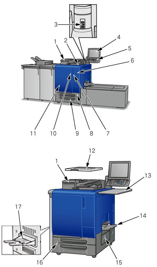 17 | Output Tray OT-511 (optional) | Holds sets output in non-offset or offset mode. |