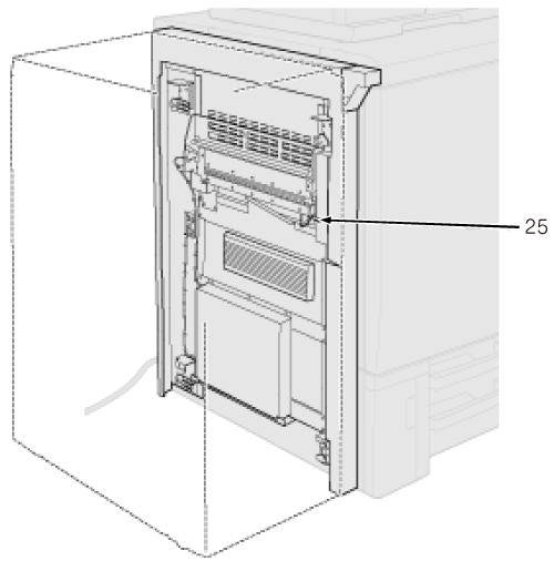25 | Lock release lever | Pressed to the back to open downward for removal of paper jam. The lock release lever can be reached from the optional device in the left side. |