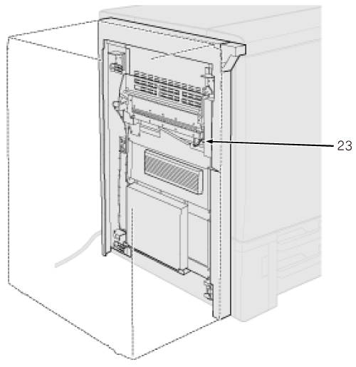 23 | Lock release lever | Pressed to the back to open downward for removal of paper jam. The lock release lever can be reached from the optional device in the left side. |