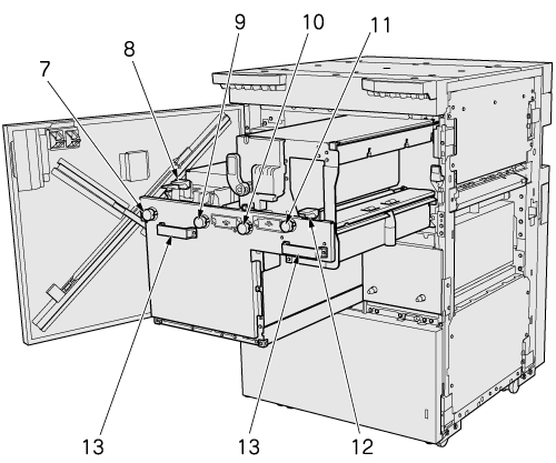 13 | Handle [IQ8] | Held to pull out the unit when paper jam occurs. |