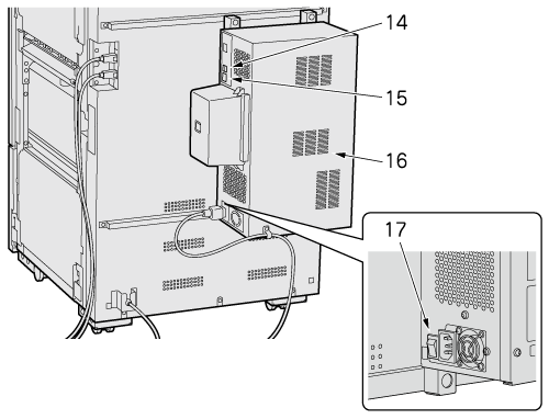 15 | Network port (10Base-T, 100Base-TX, 1000Base-T) | Connected with an Ethernet cable to use Web Utilities for Auto Inspection Unit UK-301. |