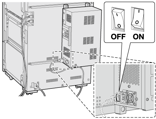 • When you forcibly turn OFF the main power switch of this machine, also turn OFF the power switch of the Auto Inspection Unit UK-301.