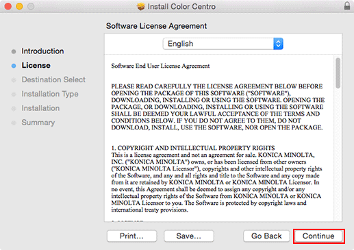 supplementary explanationIf the installer does not start, double-click ColorCentro.pkg on the CD-ROM.