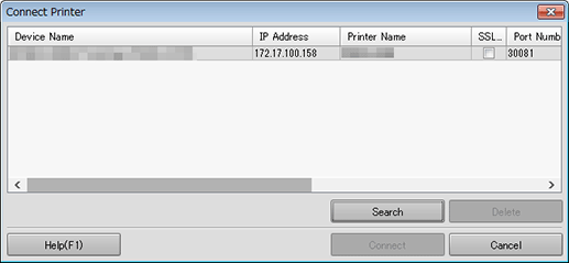 supplementary explanationWhen any destination is already connected, the device name of the connected image controller, IP address, printer name, SSL/TLS, and port number are displayed in Current Destination.
