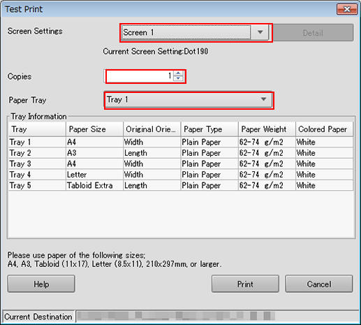 4. Set the Copies, Paper Tray, and Screen Settings.
