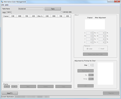 When CMYK tab is selected, Alternative Color Management screen is displayed as follows;