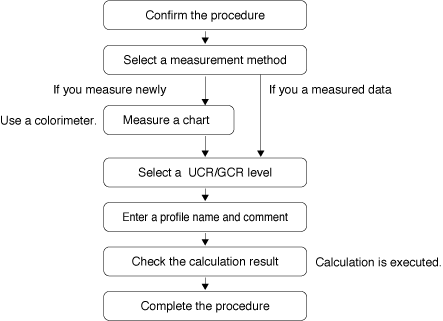 The wizard screen appears by launching Color Centro Profiler. Following the instructions of the screen, you can create the CMYK target profile.
