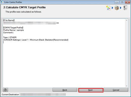 supplementary explanationIf you launched Color Centro Profiler by clicking CMYK Target Profile on the Profile Management screen, Color Centro Profiler is closed to return to Profile Management screen.