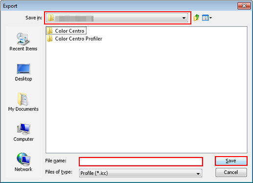 Specify the destination to store the target Printer Profile and also specify the file name in File name. Then, click Save.