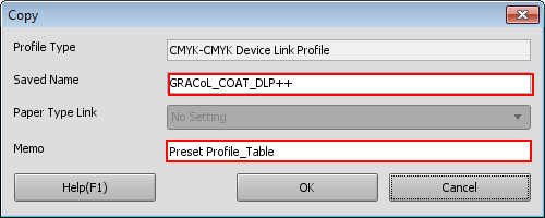 • supplementary explanationYou cannot save the CMYK-CMYK Device Link Profile of the same name with those in the image controller.