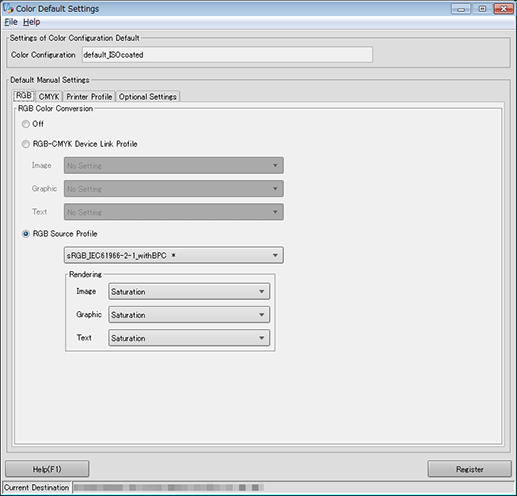 Displays the color configuration default of the image controller. For details, refer to Editing and Registering a Color Configuration.