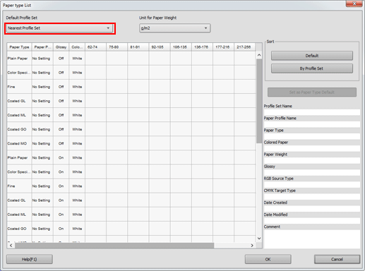 4. To set a profile set as paper type default, select a profile set and click Set as Paper Type Default.