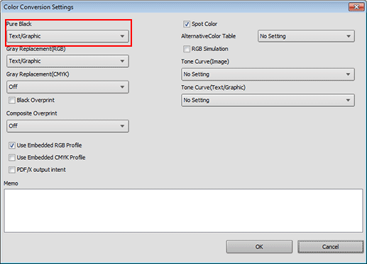 Click Setting in the Color Conversion Option Settings at the bottom of the detail information fields.