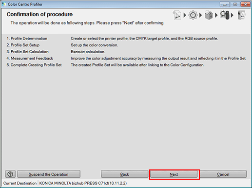 A wizard is started and the Confirmation of procedure screen is displayed.