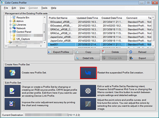 You can restart the operation on the Color Centro Profiler wizard screen operation that is unfinished but is saved as a file.