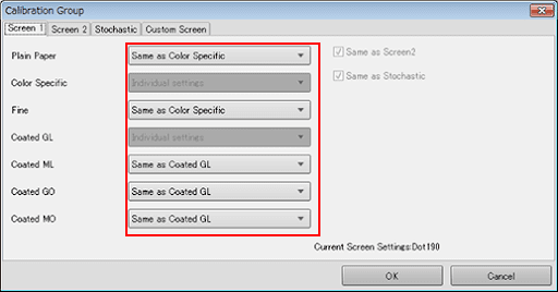 supplementary explanationTo perform grouping, select Individual Settings with one of the paper types of that group.