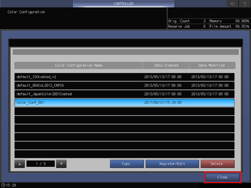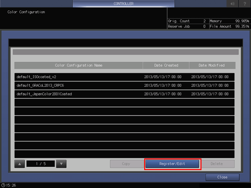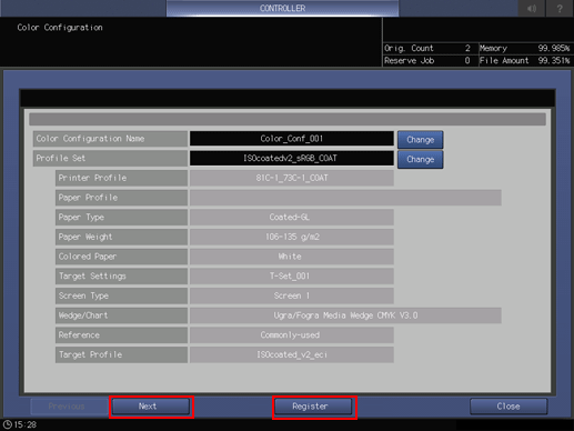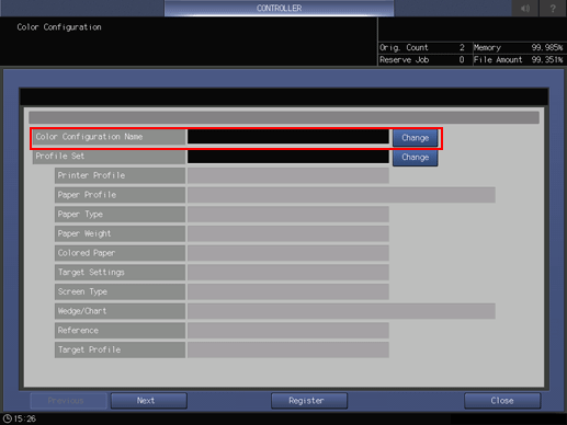Press Change of Color Configuration Name, and then create a name of a color configuration.