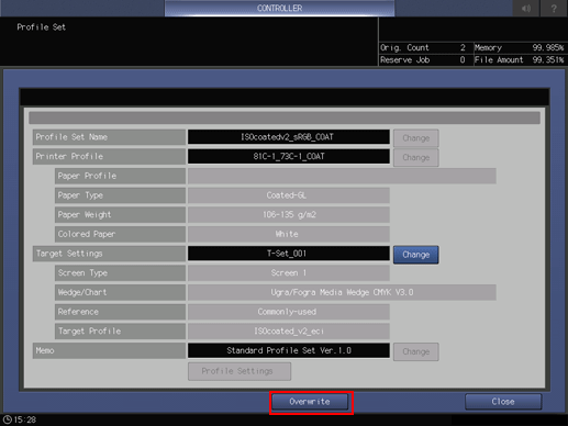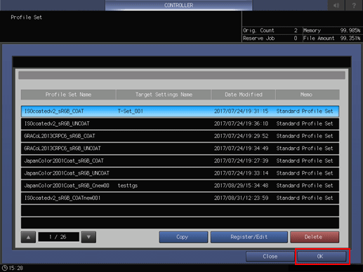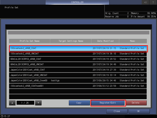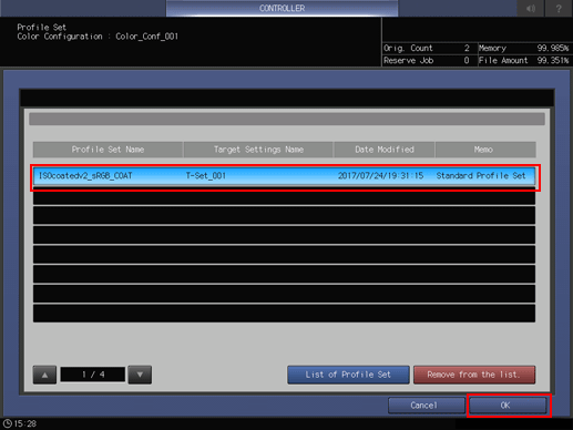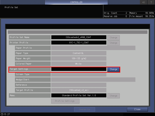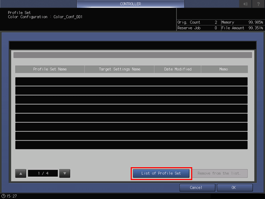 Associate the created target setting with a profile set, and create a color configuration. This section describes how to use an existing profile set.