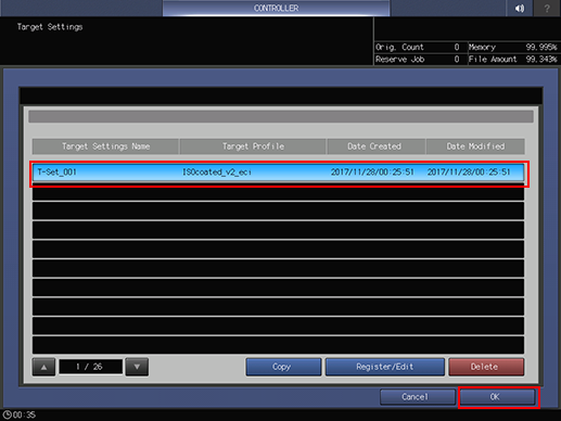 If no target setting is created, you can press Register/Edit and create a target setting on the screen that is displayed. For details about how to create a target setting, refer to steps 3 to 7 shown in Creating a Target Setting.