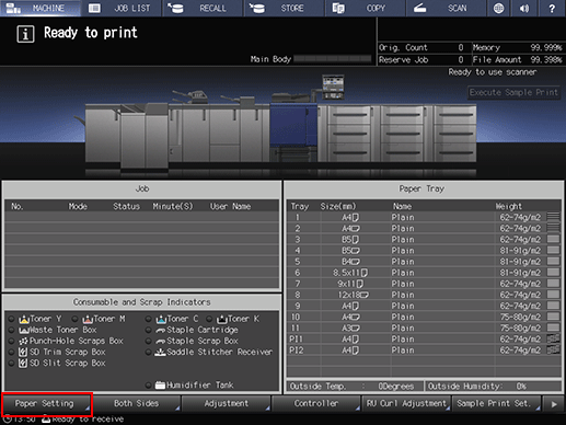 Press Paper Setting on the MACHINE screen.