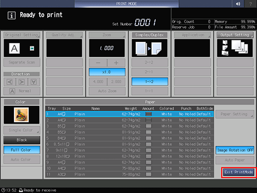 Press Exit PrintMode.