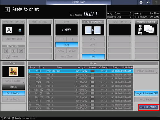 When the PRINT MODE screen is displayed, press Start on the control panel.