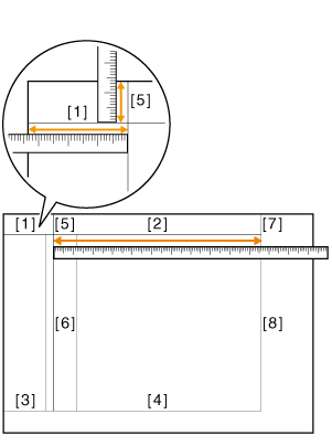 When the lengths at points [2], [4], [6], and [8] are outside the respective ranges shown below, also measure the lengths at points [1], [3], [5], and [7], then proceed to step 12.