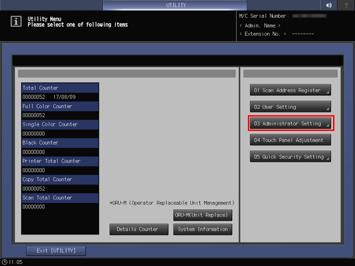 1. On the control panel of the main body, press Utility/Counter.