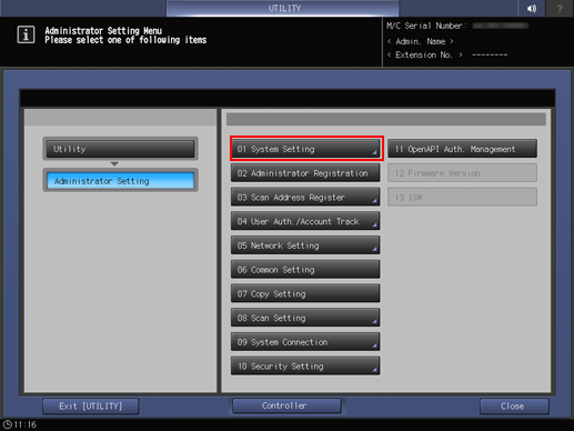 2. Press Administrator Setting.