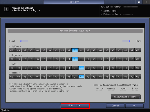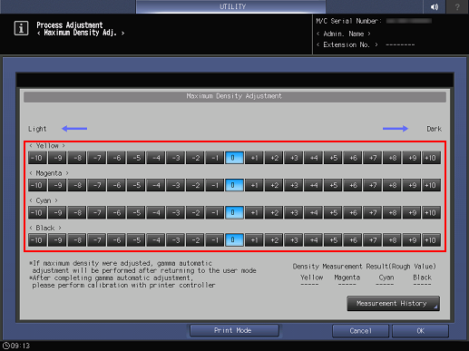 6. Press Maximum Density Adjustment.