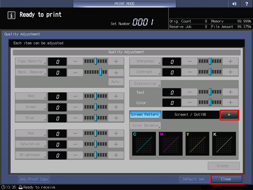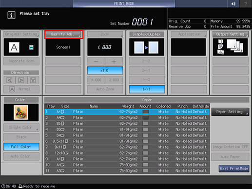 2. Press Quality Adjustment on the Adjustment Menu.