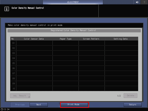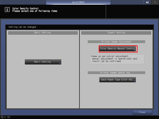 4. Press the Color Density Manual Control of Expert Setting.