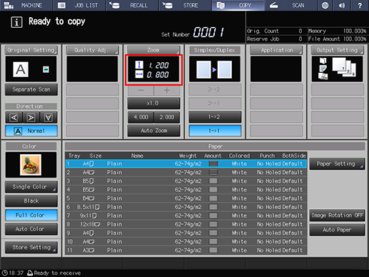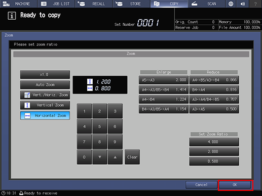 For Vert. Zoom and Horiz. Zoom, individually specify the magnification ratio within the range from 0.250 to 4.000 in 0.001 (0.1%) increments.