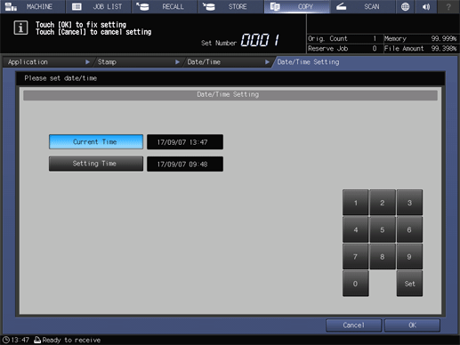 Press Date/Time Set. on the Date/Time screen to display the Date/Time Setting screen.