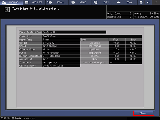 supplementary explanationIf the profile number of paper conditions to be recalled is known, press No. Recall. You can enter the profile number to easily recall the profile and configure settings.