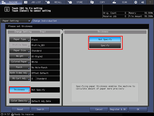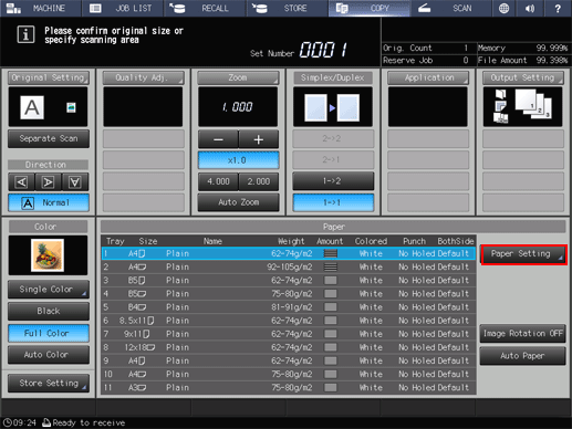supplementary explanationYou can make the same setting from both Paper Setting in the COPY screen and Paper Setting in the MACHINE screen.