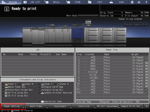 Press the tray key to change the Paper Setting.