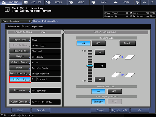 supplementary explanationIf the weight of Coated paper is set to 136 g/m2 to 350 g/m2 / 37 lb Bond to 93 lb Bond, you can select Humidifying Amount from Standard and High.