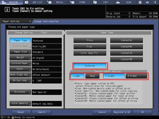 supplementary explanationTextured is displayed depending on countries or regions. When you select Textured, select the desired ones from Light, Deep, 1-Sided Textured, and 2-Sided Textured.