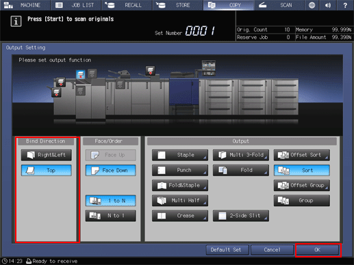 To display the Output Setting screen, press Output Setting on the COPY screen.