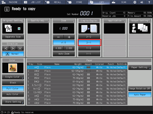preconditionSelect Direction according to the direction of the original loaded in the ADF.