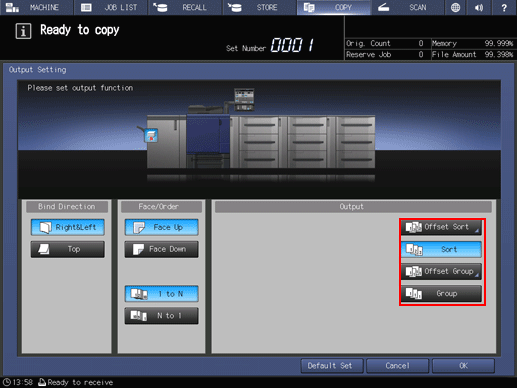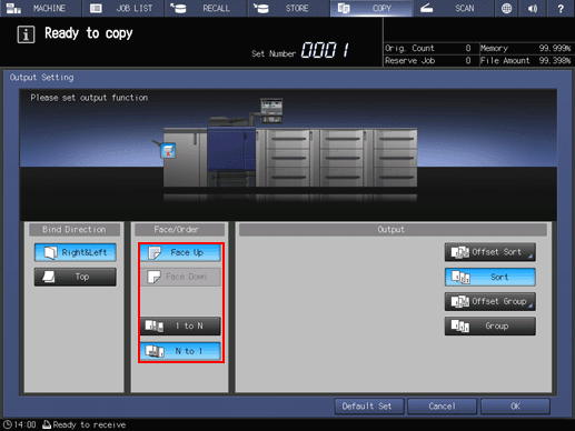 supplementary explanationSelect either Face Down or Face Up, and either 1 to N or N to 1 provided under Face/Order, as needed.
