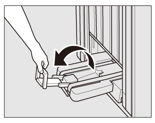 3. Open the paper delivery handle of the folder tray when Fold & Staple or Multi 3-Fold mode is selected.