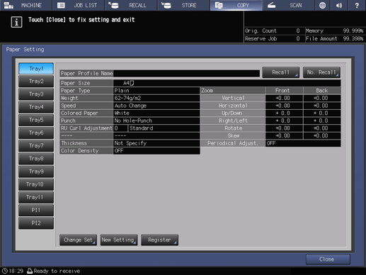 • supplementary explanationIf temporary change of the paper setting is desired, change the setting from the Paper Setting screen. For details, refer to Setting Paper in a Paper Tray.