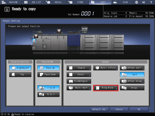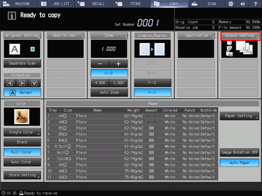 10. Press OK on the Output Setting screen to return to the COPY screen.